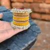 women kara bangles, metal bangle set, gold plated bangles, crystal bangles, yellow bangles, modern design bangles, 18 pcs bangle set, women jewelry
