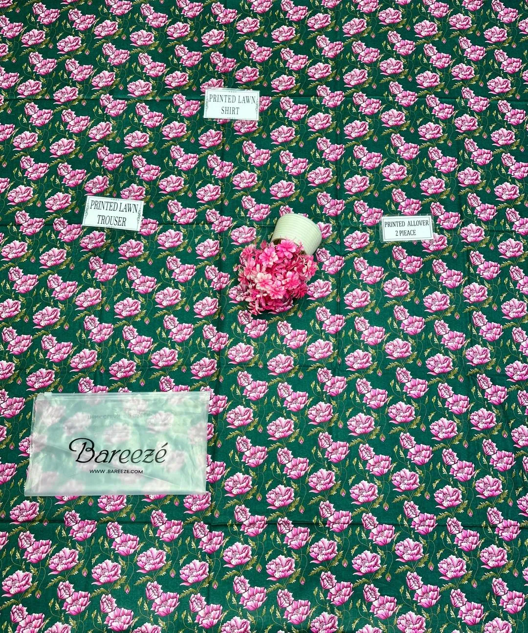 women unstitched suit, printed lawn suit, green lawn suit, ladies lawn fabric, unstitched printed suit, women lawn dress, lawn shirt trouser