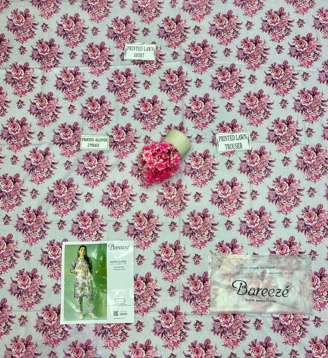 2-piece women’s unstitched suit featuring printed lawn fabric.