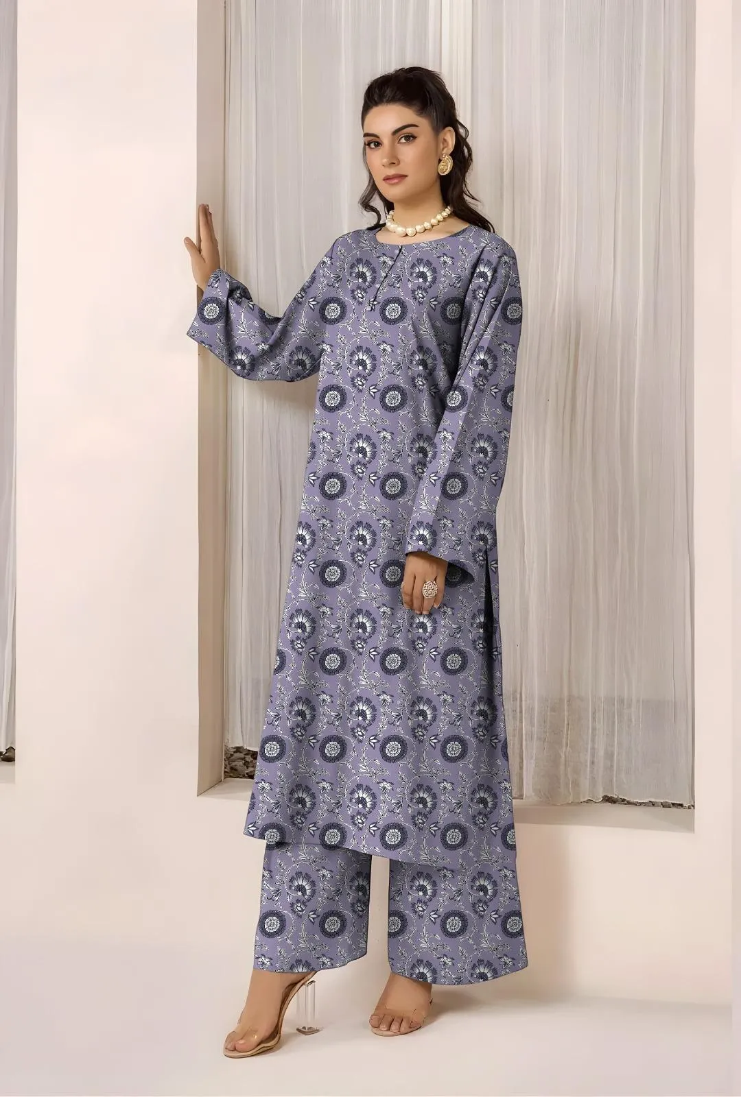 Women’s unstitched printed suit made from lawn fabric.