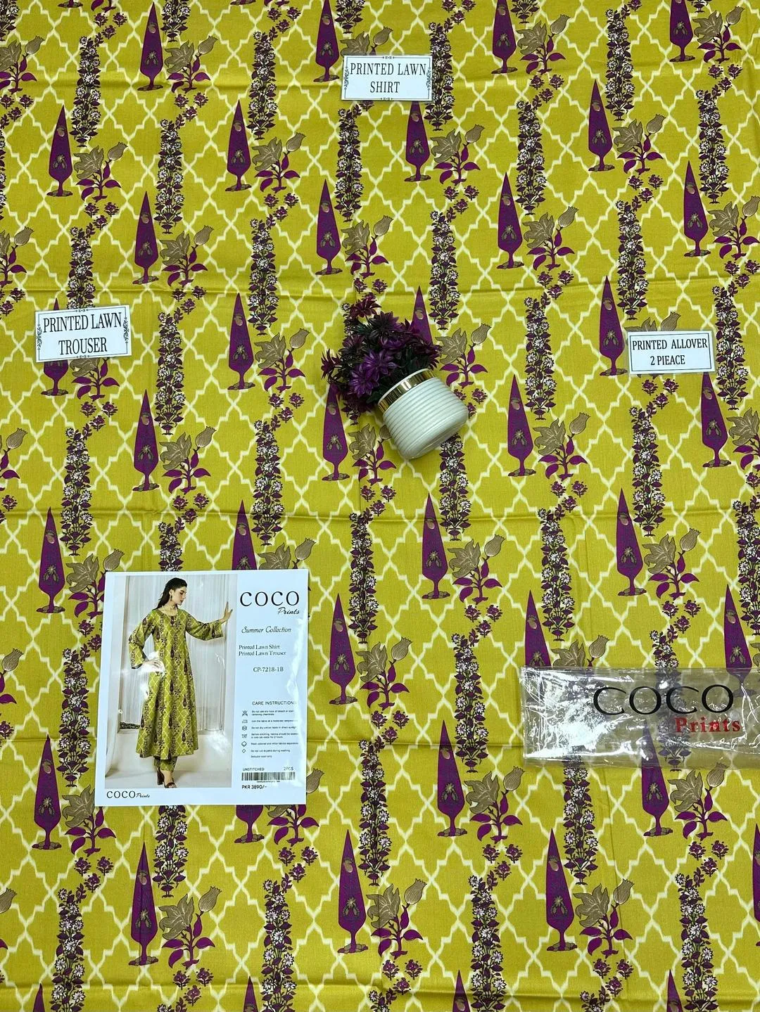 women unstitched suit, printed lawn suit, women lawn dress, unstitched printed suit, yellow lawn suit, ladies unstitched fabric, lawn shirt trouser