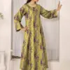 Buy women’s unstitched printed lawn suit in yellow color with shirt and trouser fabric, ideal for custom stitching and everyday wear.