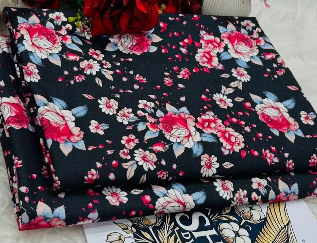 women’s unstitched suit, 2 pcs suit, printed polo cotton, black printed suit, ethnic wear, casual wear, stitched/unstitched suit
