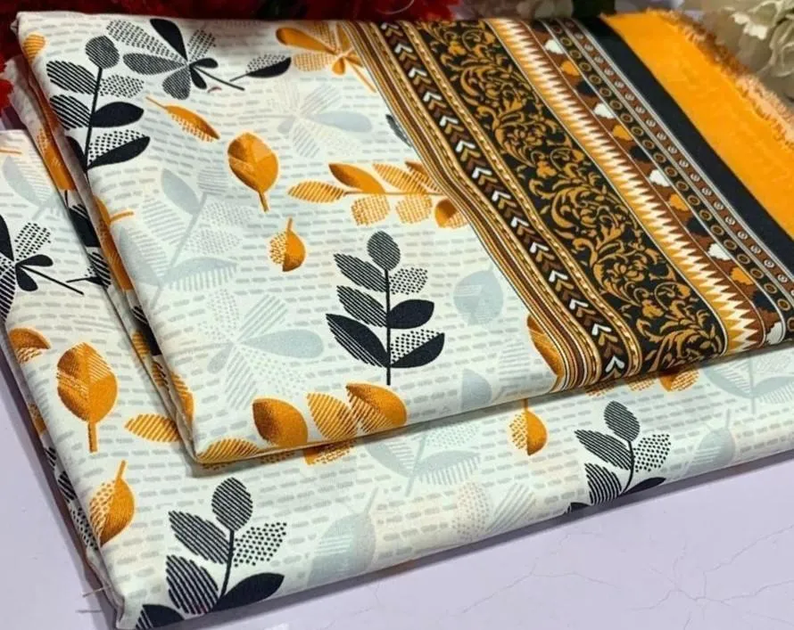 2 Pcs women’s unstitched printed suit made with soft polo cotton fabric.