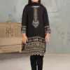 Buy 3 Pcs Girls Black Dhanak Embroidered Unstitched Suit with shirt, trouser and dupatta. Available in sizes 3–4 to 8–10 years.