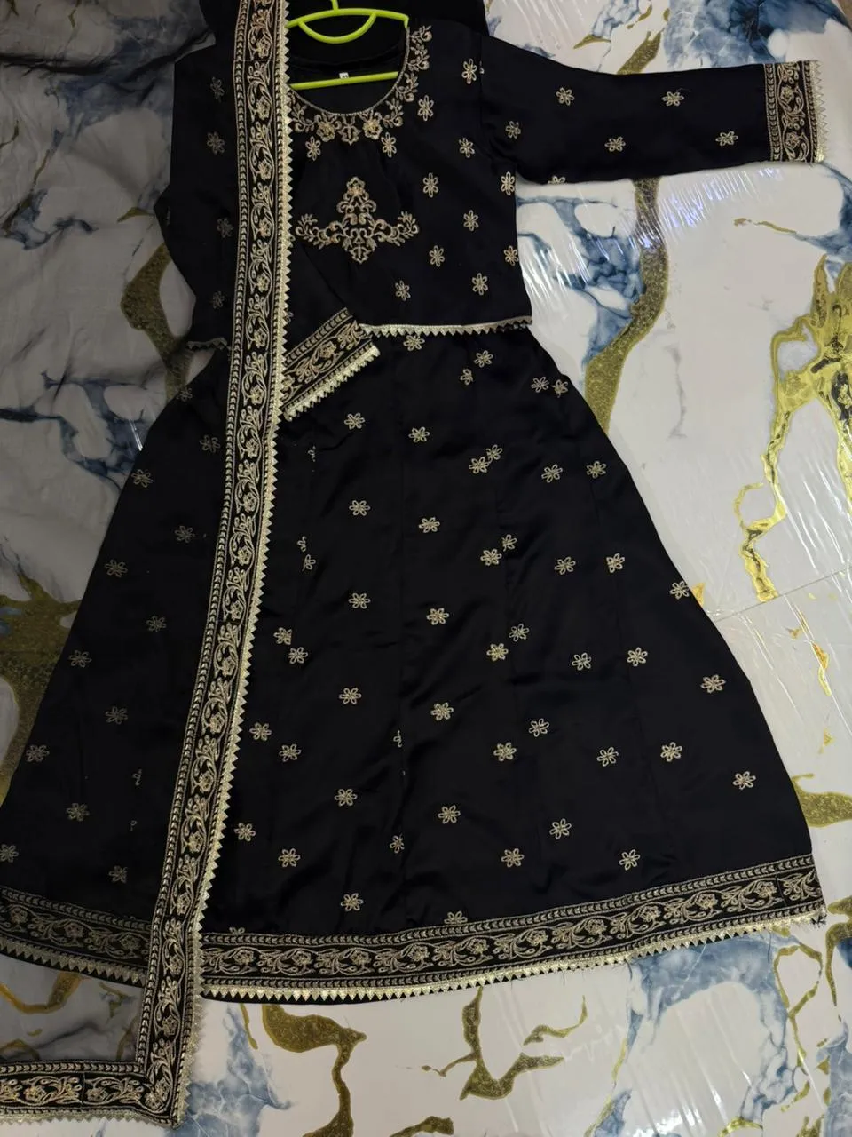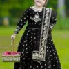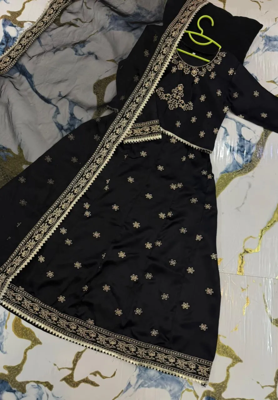 Buy 3 Pcs Girl’s Shamoz Silk Embroidered Shirt and Skirt Set in black. Includes embroidered top, skirt & dupatta. Sizes 5-12 years available.