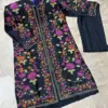 Make a stunning impression at weddings, parties, and festive events with this 3 Pcs Women’s Stitched Heavy Embroidered Shamoz Silk Gown Suit in classic black. This elegant 3-piece set includes a front fully embroidered gown, a sleeveless plain inner, and a plain silk trouser, blending sophistication with comfort.