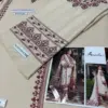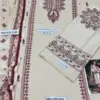 A: The set includes 1 unstitched embroidered shirt, 1 plain trouser, and 1 embroidered dupatta.
