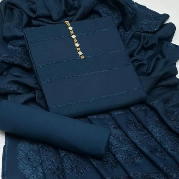 A: The set includes 1 unstitched embroidered shirt, 1 plain trouser, and 1 embroidered dupatta.