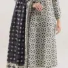 Shop 3 Pcs Women’s Unstitched Printed Lawn Suit in Off White. Includes 3 meter shirt, 2.5 meter trouser and dupatta. Special Eid collection.
