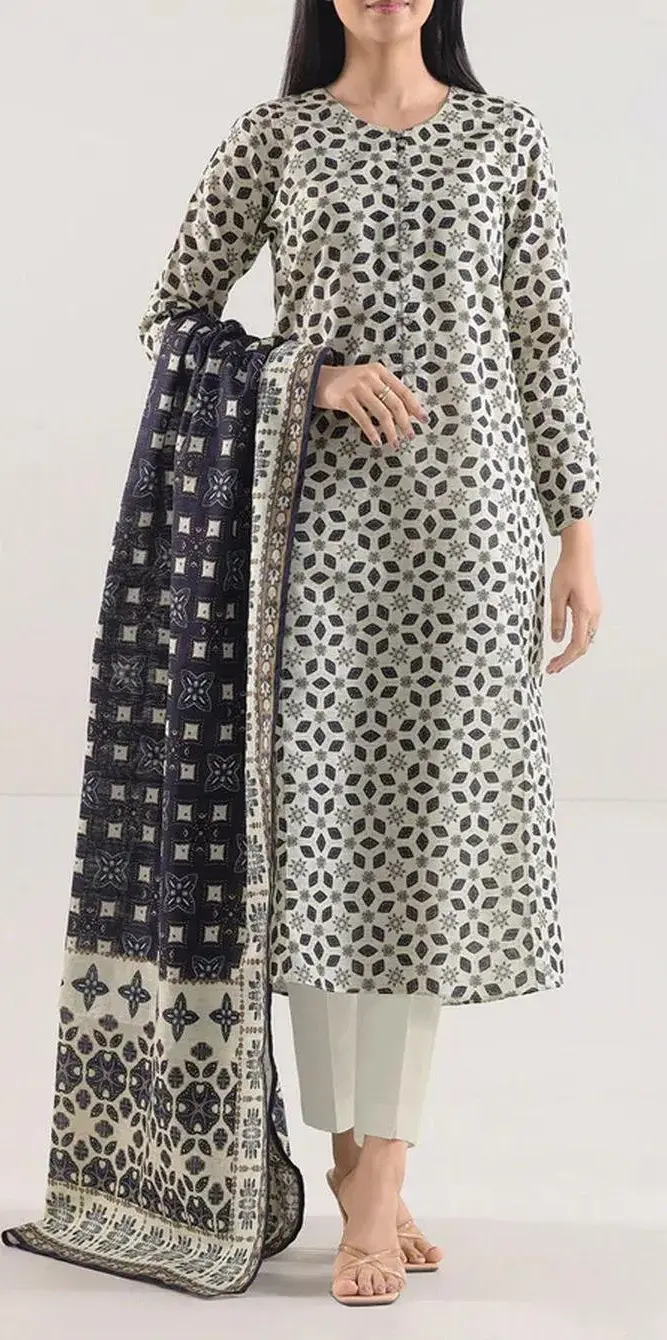3 pcs unstitched suit, women lawn suit, printed lawn suit, off white suit, eid collection suit, ladies unstitched dress, lawn suit 3 piece, printed shalwar kameez