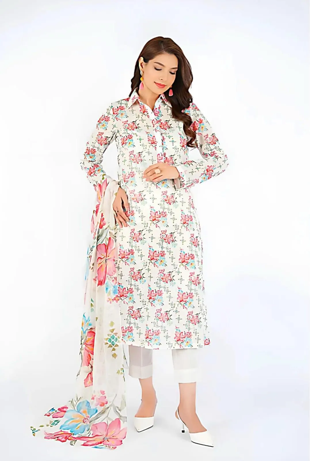 It comes with a printed dobby lawn dupatta, suitable for stitching as desired.