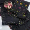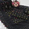 3 pcs women’s unstitched printed linen suit in black with shirt, trouser, and dupatta. Includes 2.5 meter cutting for each piece.