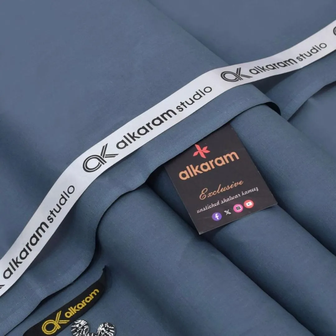 The package includes 4.5 meters of soft cotton fabric, 8 matching buttons, an Alkaram brand tag, and elegant bag packaging, making it ideal for personal use or gifting. The 100% color guarantee ensures your suit maintains its sophisticated grey tone wash after wash when cared for properly.