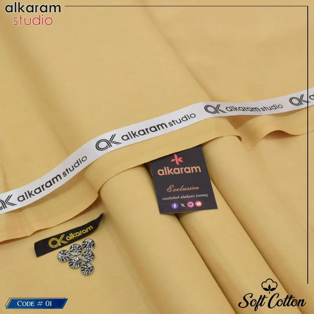 Elevate your summer wardrobe with the Alkaram Men’s Unstitched Soft Cotton Plain Suit in Yellow—a perfect blend of comfort, quality, and vibrant style. Crafted from premium soft cotton, this fabric is exceptionally breathable, making it ideal for hot and humid weather. The bright yellow shade brings a refreshing, confident look suitable for day events, casual gatherings, and festive occasions.