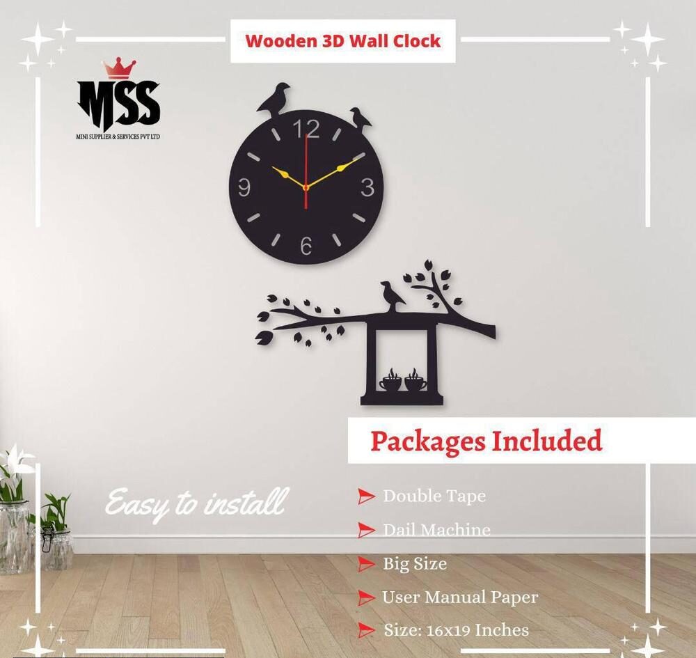 analog wooden wall clock, 3D wall clock black, MDF wall clock, 16 x 20 inches clock, home decor wall clock, modern wall clock Pakistan, wooden wall art clock, black wall clock