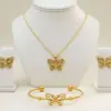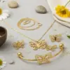 Enhance your style with the Butterfly Design Gold Plated Rhinestone Necklace & Bracelet Set. Crafted from high-quality stainless steel, this elegant 3-piece jewelry set includes a statement necklace, stylish bracelet/hand chain, and matching tops. The unique butterfly design with shimmering rhinestones offers a perfect balance of grace and glamour, ideal for women who love timeless fashion with a modern touch.