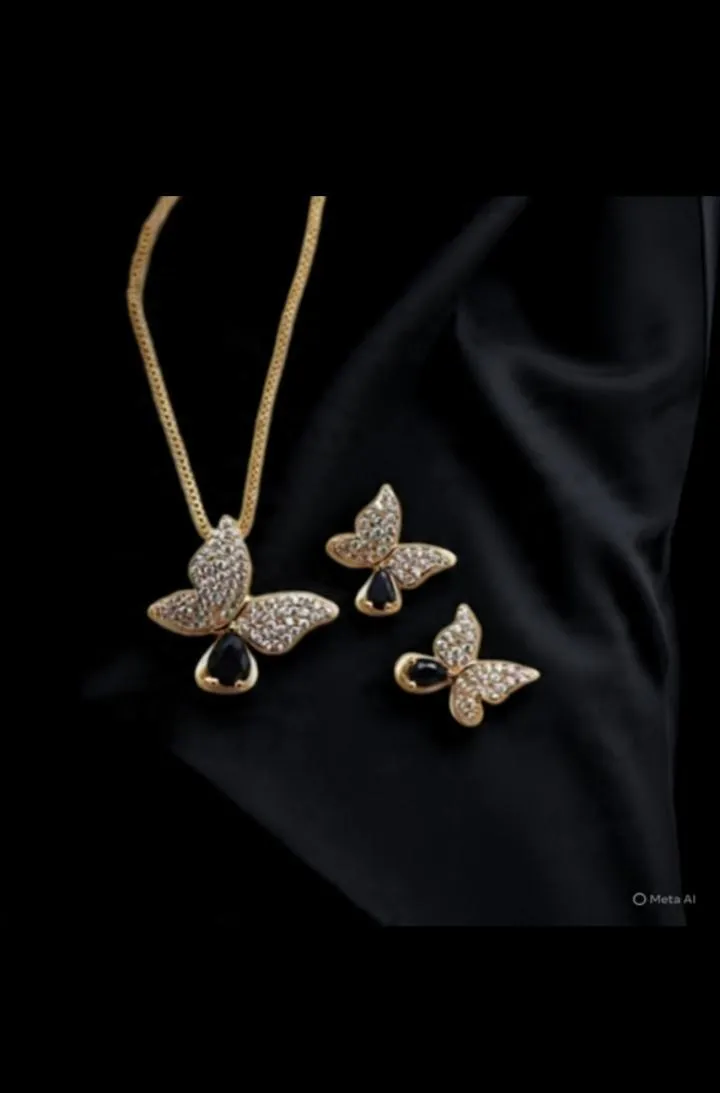 gold plated pendant set, butterfly pendant set, zircon pendant set, women jewelry set, adjustable pendant, white stone pendant, butterfly jewelry, gold pendant set, black color pendant
