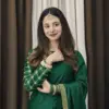 women stitched saree, green shamoz silk saree, embroidered saree for women, festive wear saree, party wear saree, stitched saree with blouse, premium silk saree, ladies saree Pakistan, saree with petticoat, designer saree