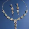 silver artificial jewelry, pendant set for women, alloy jewelry set, artificial necklace earrings, women fashion jewelry, affordable jewelry set, silver pendant set