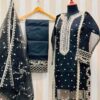 A: The set includes a stitched organza shirt, matching trousers, and an embroidered dupatta.Q2: Is this suit ready-to-wear or unstitched?