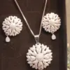 flower design pendant set, silver plated jewelry, zircon pendant set, women jewelry, silver artificial set, white stone jewelry, flower jewelry