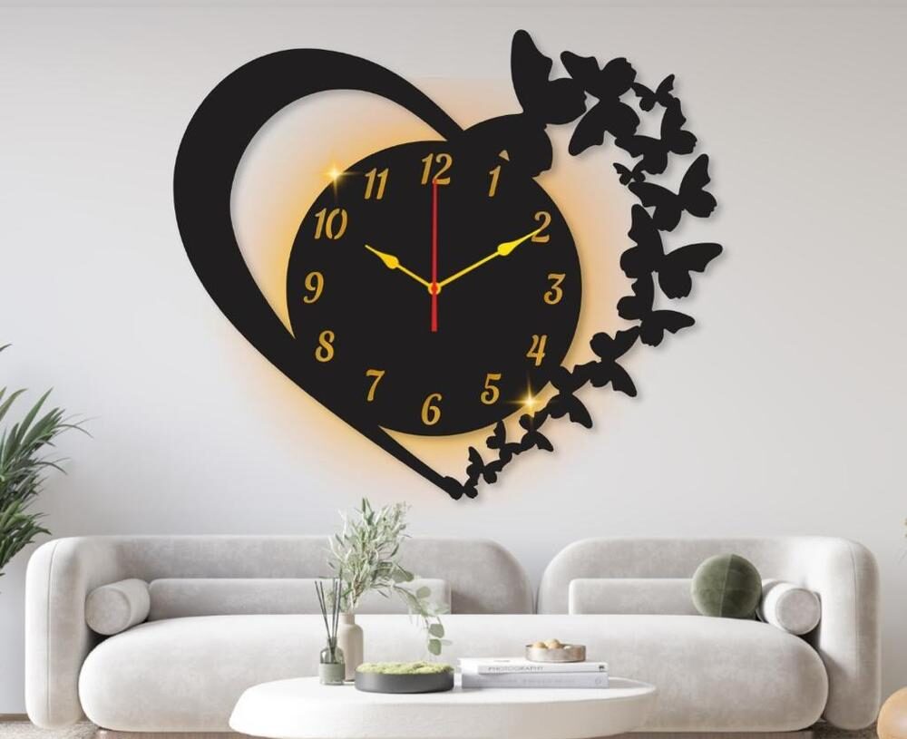 heart shaped wall clock, wall clock with light, laminated wall clock, 16 x 16 inches clock, chipboard wall clock, laser cut wall clock, home decor clock, 12 hour display clock