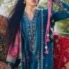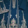Hussain Rehar suit, women unstitched suit, dhanak embroidered suit, designer winter dress, blue 3 piece suit, pashmina dupatta suit