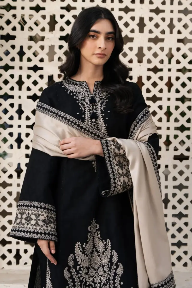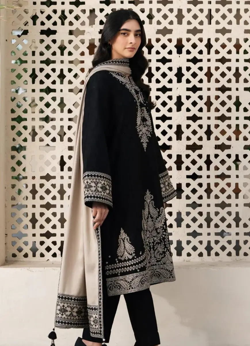 Designed in classic black with exquisite embroidery and a printed dupatta, this suit is ideal for formal events, casual gatherings, or festive occasions. The breathable lawn fabric ensures all-day comfort, while the embroidered details enhance elegance.