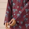 The printed khaddar shirt features consistent patterns across the front, back, and sleeves, giving it a cohesive and elegant appearance. Paired with a printed khaddar trouser, the suit delivers a balanced look that is both practical and fashionable. The rich maroon color adds a classic winter charm, suitable for both daytime and evening wear.