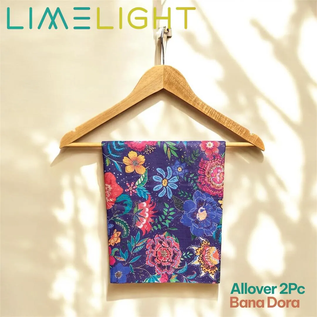 LimeLight printed suit, Bana Dora suit, cotton lawn suit, unstitched 2-piece suit, casual wear, semi-formal wear, blue printed suit