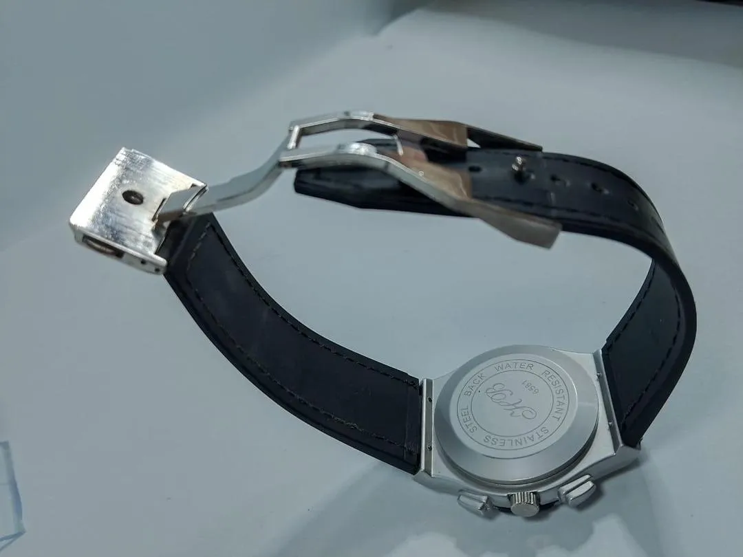 Luxury Chronograph Men’s Watch – Stainless Steel Case with Black Leather Strap