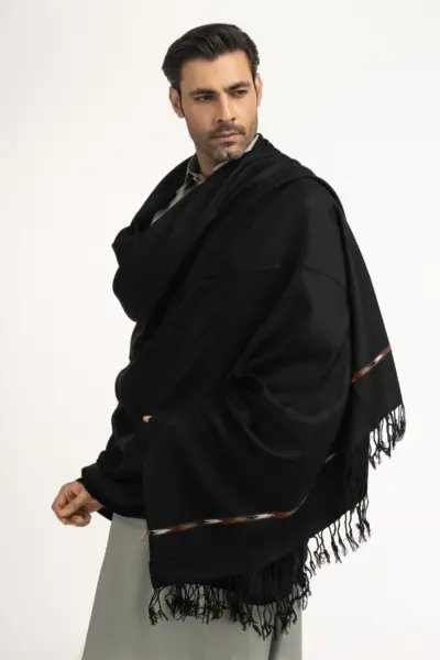 men wool shawl, black wool shawl, 3 gazz shawl, winter shawl for men, soft woolen shawl, warm men’s shawl, plain black shawl, traditional wool shawl