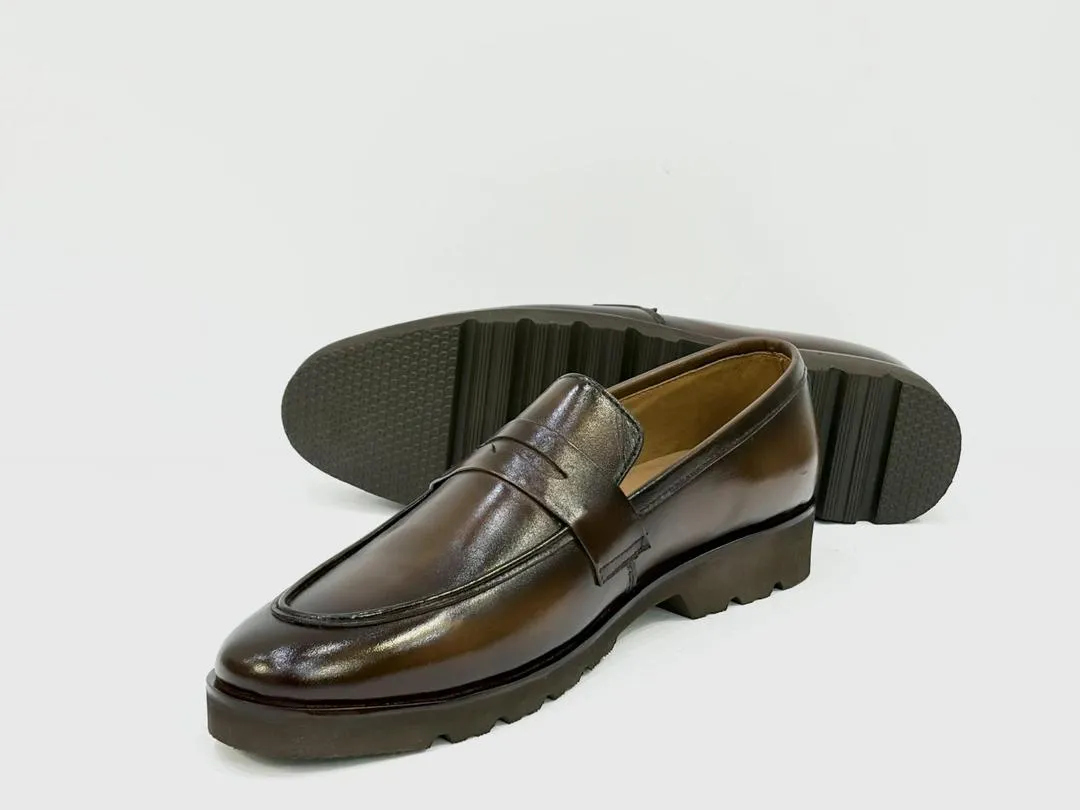 men leather loafers, casual men shoes, brown leather loafers, handcrafted footwear, men rubber sole shoes, plain design loafers, daily wear leather shoes