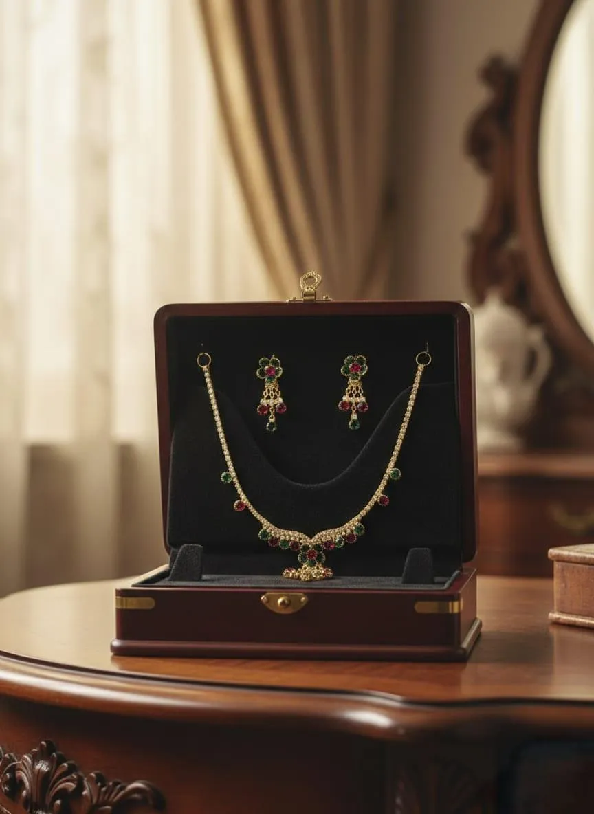 Stylish women’s necklace set made from alloy with gold plating and crystal stones.