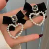 korean earrings, dangling earrings, pearl earrings, women fashion earrings, antique plated earrings, modern earrings, lightweight earrings, gift for women