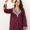 women’s lawn suit, embroidered maroon suit, 2-piece unstitched, casual wear, semi-formal suit, Motifze, designer lawn suit