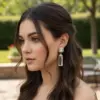 Elegant women’s fancy earrings made from stainless steel with gold plating and crystal detailing.