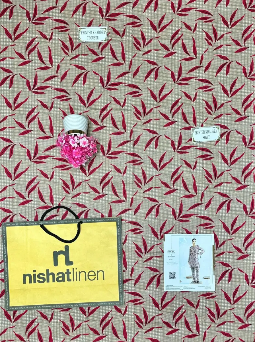 The package includes 1 printed khaddar shirt (3.0m) and 1 printed khaddar trouser (2.5m).