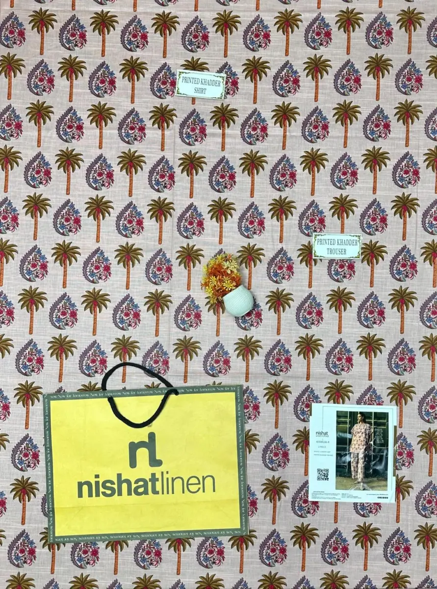 The package includes 1 printed khaddar shirt (3.0m) and 1 printed khaddar trouser (2.5m).