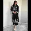 women embroidered suit, black lawn suit, unstitched embroidered suit, 2-piece women suit, ladies lawn dress, Pakistani women clothing, breathable lawn fabric, custom-tailored suit, embroidered shirt with plain trouser