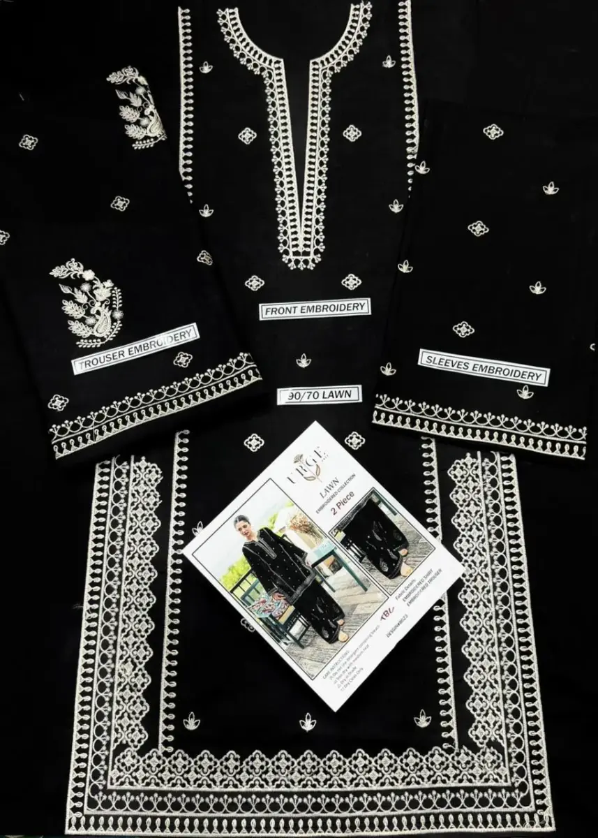 black embroidered lawn suit, women unstitched suit, ladies 2 piece suit, embroidered lawn dress, cotton lawn trouser, summer lawn suit
