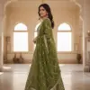 women unstitched suit, 3 pcs printed suit, chiffon suit for women, green women suit, silk trouser suit, net dupatta suit, Pakistani women suits, ladies lawn alternative