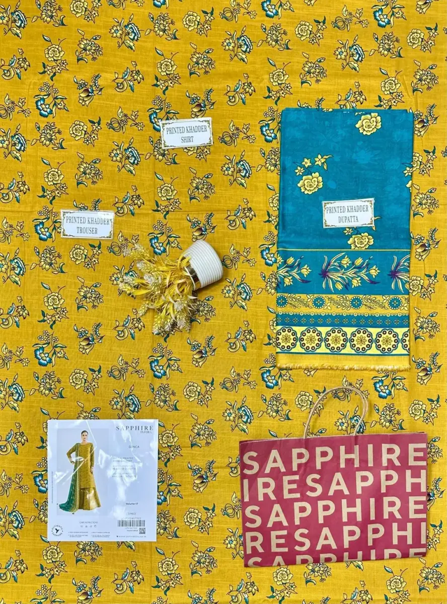 golden khaddar suit, women unstitched khaddar, 3 pcs printed suit, winter women clothing, Pakistani khaddar suit, casual khaddar outfit