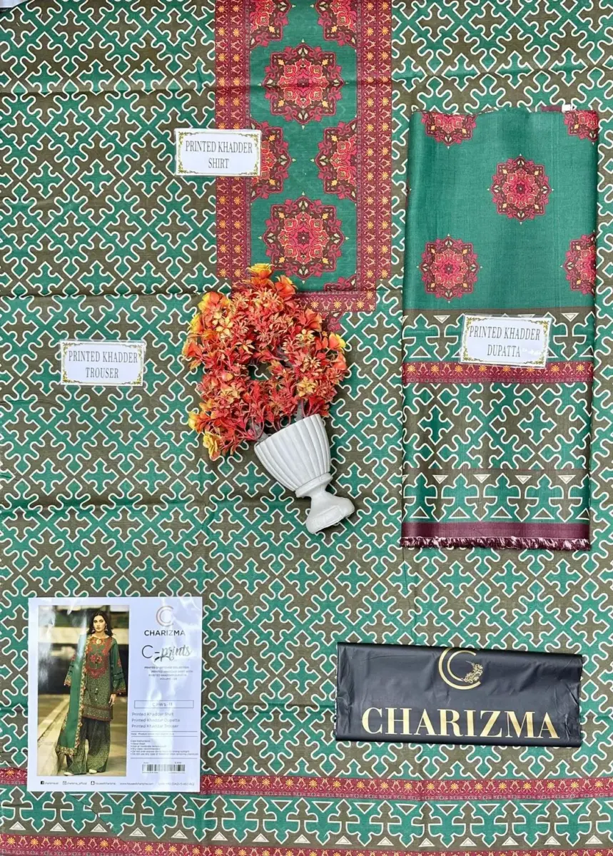 green khaddar suit, women unstitched khaddar, 3 pcs printed suit, winter women clothing, Pakistani khaddar suit, casual khaddar outfit