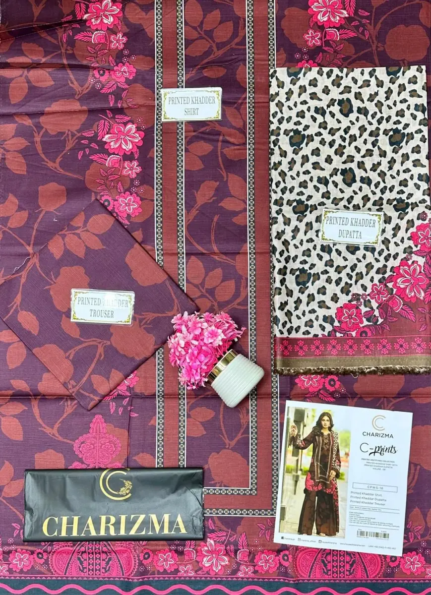 1 printed khaddar shirt (3.0m), 1 plain khaddar trouser (2.5m), 1 printed khaddar dupatta (2.5m).