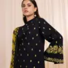 women unstitched suit, embroidered lawn suit, 3 piece ladies suit, black lawn suit, diamond dupatta suit, summer unstitched suit, embroidered suit fabric