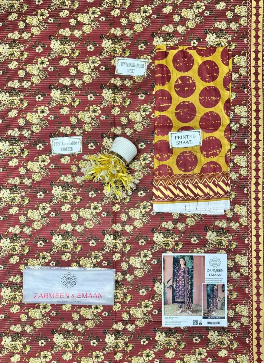 This winter-ready set features a printed khaddar shirt with patterns on the front, back, and sleeves, matching printed khaddar trousers, and a printed wool dupatta that adds a touch of luxury while keeping you warm. The unstitched design allows you to customize the fit and tailoring according to your personal style and size, making it ideal for all body types.