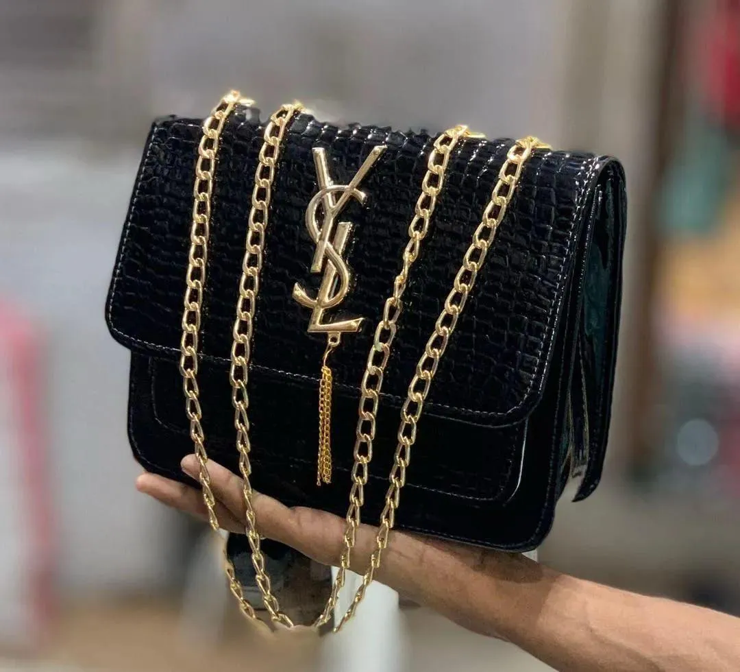 Upgrade your wardrobe with this Women’s Leather Textured Handbag featuring a stylish crocodile pattern and YSL-inspired front fitting. Made from high-quality leather, it includes a top handle, long chain for crossbody use, and a central pocket for easy organization. Compact yet functional with dimensions L: 7″, W: 8.5″, H: 2″, this handbag is perfect for daily use, parties, or gifting, offering elegance, practicality, and easy portability.